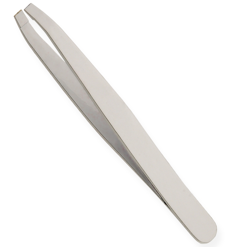 Eyebrow Tweezers Straight Available Sizes. 10 cm Details. All tweezers are made of superior quality stainless steel J1/410, HRC° (hardness) 43° – 45°. Beautifully designed top quality stainless steel. This all purpose tweezers is ideal for facial hairs, bikini lines and other unwanted body hair. Available in slanted, straight and pointed tips