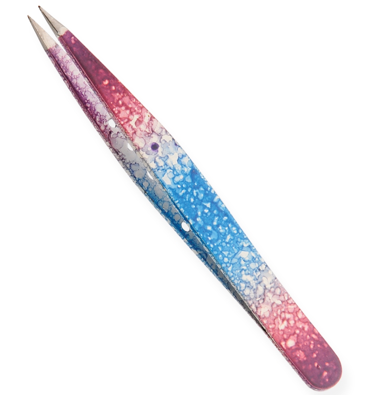 Eyebrow Tweezers Multi-Colored Design, Pointed Available Sizes. 9 cm Details. All tweezers are made of superior quality stainless steel J1/410, HRC° (hardness) 43° – 45°. Beautifully designed top quality stainless steel. This all purpose tweezers is ideal for facial hairs, bikini lines and other unwanted body hair. Available in slanted, straight and pointed tips