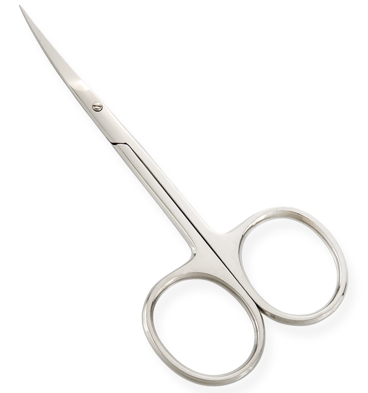 Available Sizes. 3.5 in Details. All scissors are made of superior quality stainless steel 410, HRC° (hardness) 45° – 48°. Available in Blister Packing, Pouches and Plastic Bags. Nail Scissors Polished Blade with Matt Finish, Adjustable Screw, Curved